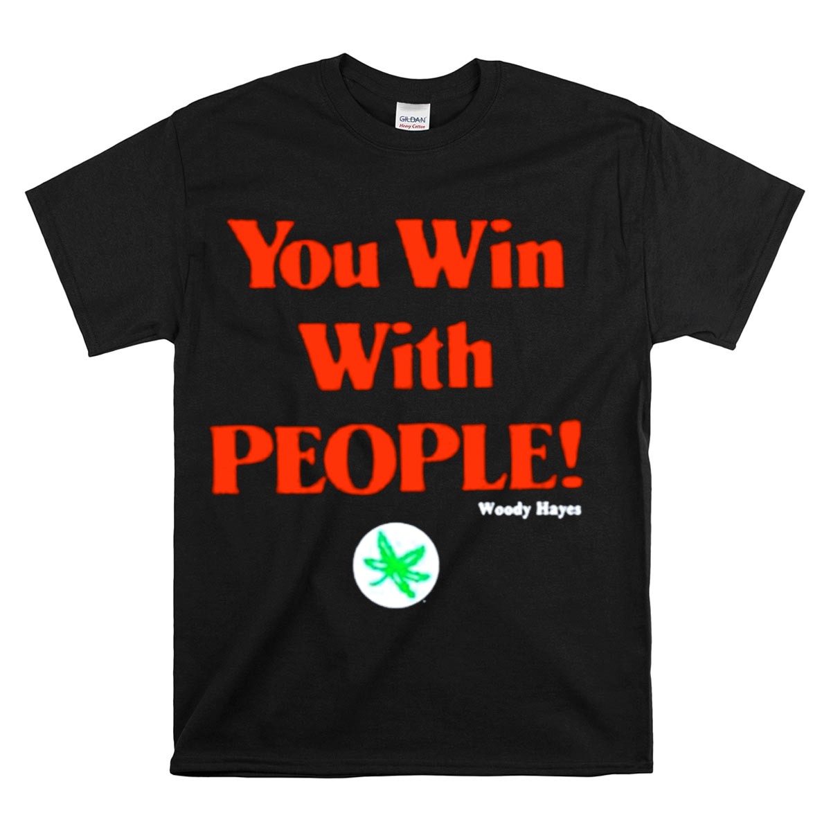Show your unwavering support for the Ohio State Buckeyes with the “You Win With People” Woody Hayes T-Shirt. This fan-made design captures the spirit of teamwork and dedication that defines Buckeye pride, making it the perfect choice for die-hard fans and casual wearers alike. Whether you’re cheering from the stands, attending a themed event, or simply enjoying a day out, this classic tee is designed for comfort and style, ensuring you stay cool and confident while showcasing your allegiance.