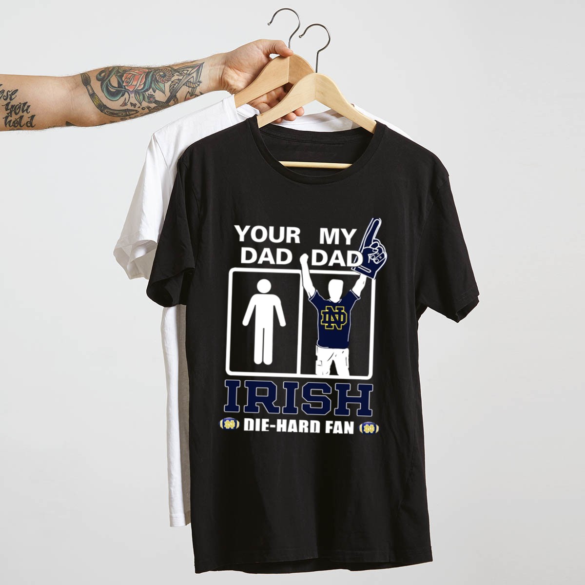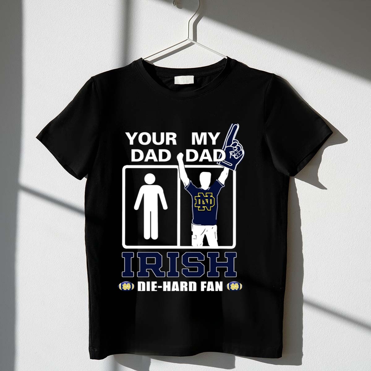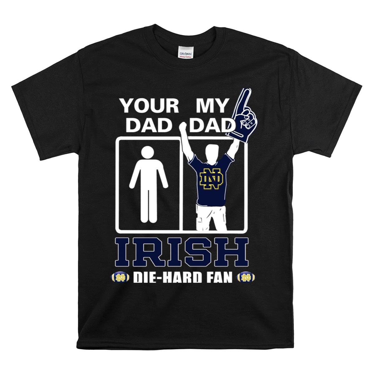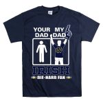 Show your unwavering support for the Notre Dame Fighting Irish with the “Your Dad My Dad Irish Die Hard Fan” T-shirt! This fan-made design is perfect for dedicated supporters of all ages, making it an ideal choice for game days, casual outings, or themed events. Crafted with care and printed right here in the USA, this shirt embodies a spirit of camaraderie and pride that every die-hard fan will appreciate.