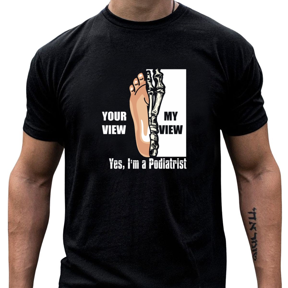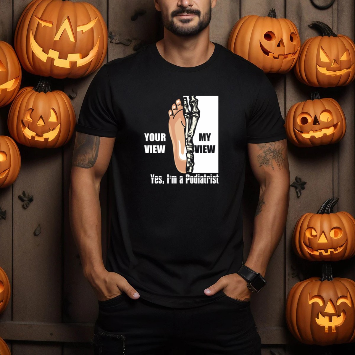 Celebrate your passion for podiatry with our “Your View My View Skeleton Feet” T-shirt, perfect for foot doctors and Halloween enthusiasts alike! This fan-made design showcases a playful skeleton theme, making it an ideal choice for casual wear, themed events, or simply showing off your love for feet during the spooky season. Crafted for comfort and style, this shirt is not just a statement piece—it’s a conversation starter!