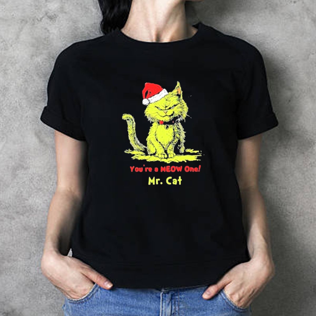 Youre A Meow One Mrkids T Shirt Fcat Christmas With Santa Hat Grinch T-Shirt