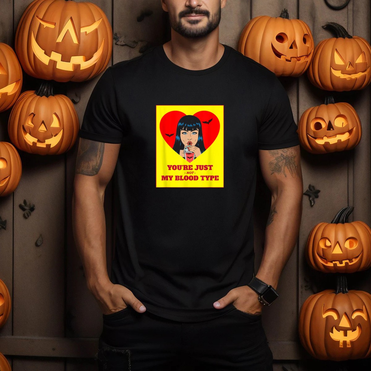 Youre Just Not My Blood Type Vampire Witch Heart Bats Halloween T-Shirt