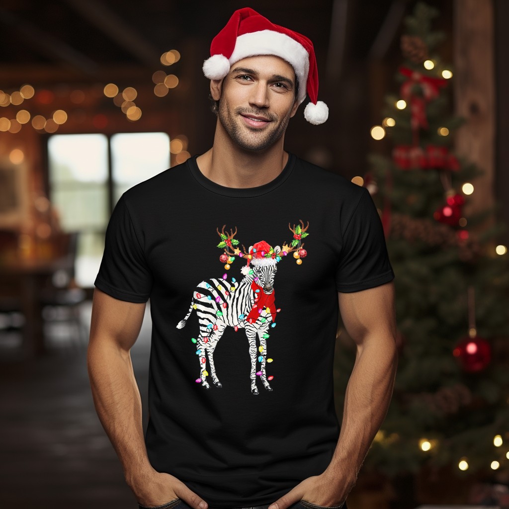 Get ready to spread some holiday cheer with our whimsical Zebra Wrapped In Christmas Lights T-Shirt! Perfect for animal lovers and festive spirits alike, this unique design features an adorable zebra adorned with twinkling lights, a Santa hat, and reindeer antlers. Whether you’re attending a themed holiday party, relaxing at home, or looking for a fun outfit for casual outings, this tee is sure to turn heads and spark joy. Made in the USA, it’s a fan-made favorite that combines creativity with comfort.