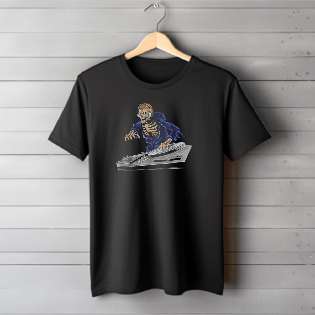 Be the first to review “Zombie Skeleton Halloween Dj With Headphones And Turntable T-Shirt”
