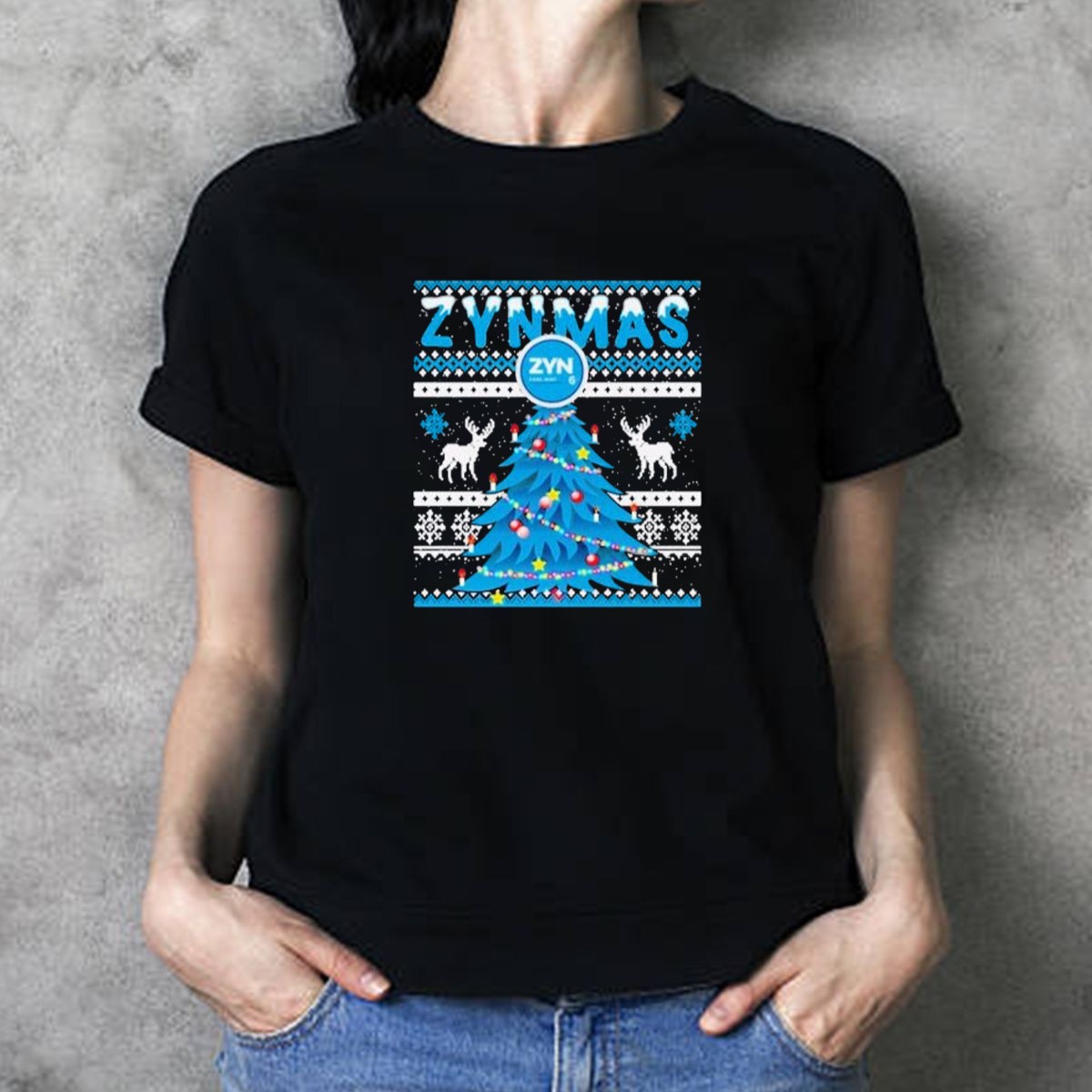 Celebrate the festive spirit with our Zynmas Zyn Blue Christmas Tree Reindeer Pattern Snowflakes T-Shirt! Perfect for everyone who loves to embrace the joy of the holiday season, this shirt adds a touch of whimsy to your casual wardrobe. Whether you’re attending a themed event, gathering with family, or simply enjoying daily wear, this fan-made design, printed right here in the USA, is sure to spread cheer wherever you go.